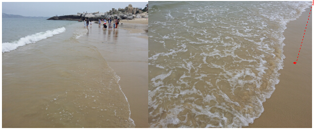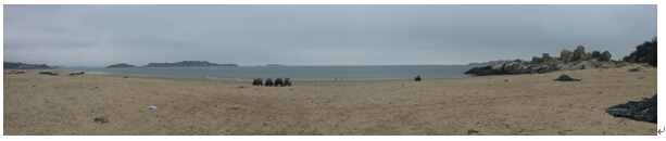 历时近两个小时我们抵达海边,此时海滩上还是空无一人。脚踏细沙,眼看大海!晨风照面,舒爽怡人;海味入鼻,直动心灵;错落小岛,迫人遐想无穷!