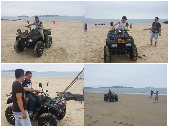 一到海滩,杨胜总尽显“壕”气,二话不说直接租了辆沙滩车让大家玩耍。此时小伙伴们已经忘却了一路车马劳顿,轮番上阵秀车技,然而小丁身为土生土长的平潭人自然要当仁不让地教起大家如何开沙滩车。