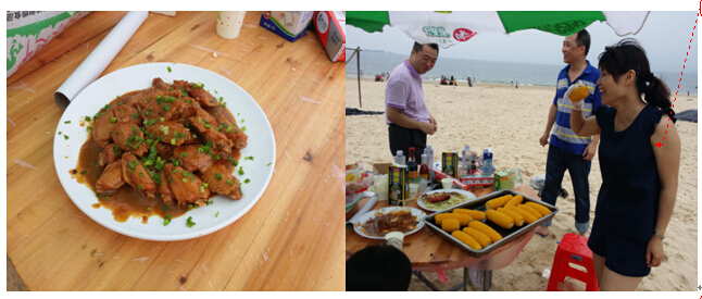 垂涎了太久,而烤炉偏少,烧烤进度缓慢,刘总建议我们在烧烤的同时,拿出一部分食物直接到附近的餐馆直接加工成熟食,美味登场。