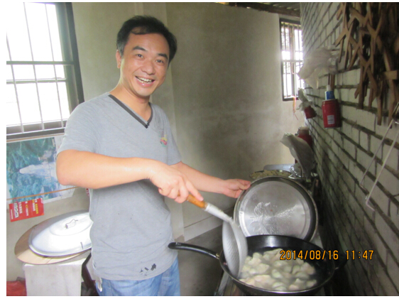 农家主人还是比较纯朴的,把自家的厨房让给我们煮饺子。在这里,胡总监担当大厨,看看这架式,我们不得不赞叹:好男人就在我们身边。