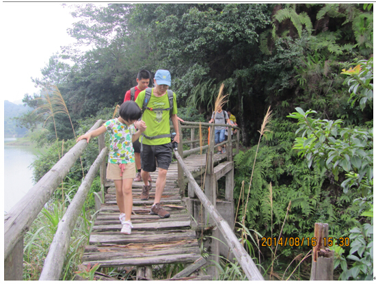 (图六)我们行进在通往梅雨潭的小木桥上