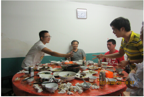 回到农家,期待中的晚餐开始了,土鸡、番鸭,都是主人家里自己养的,主人为我们提供了10多种的野菜,更是让大家享受到与城市里不同的美味。端起酒杯共饮,“小蜜蜂”的游戏更是把大家嗨到了,王世鹏的“么么”太形象了,逗的大家哈哈大笑!而小万妹子的酒量也让我们见识到啦,还有仗义的小丁跳出来喝了不少酒,呀!呀!小伙伴们给这个宁静的乡村带来了少有的暄嚣。