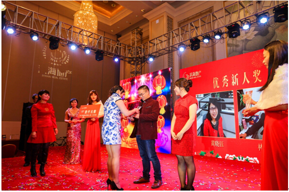 在欢快的节目进行中,穿插进行了优秀新人、优秀员工以及优秀团队的颁奖仪式。