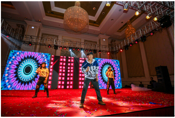 工程部何军与财务部的妹子们带来了节奏感与动感强烈的爵士舞,舞台上霎那间充满了自由、愉悦、奔放的青春气息。