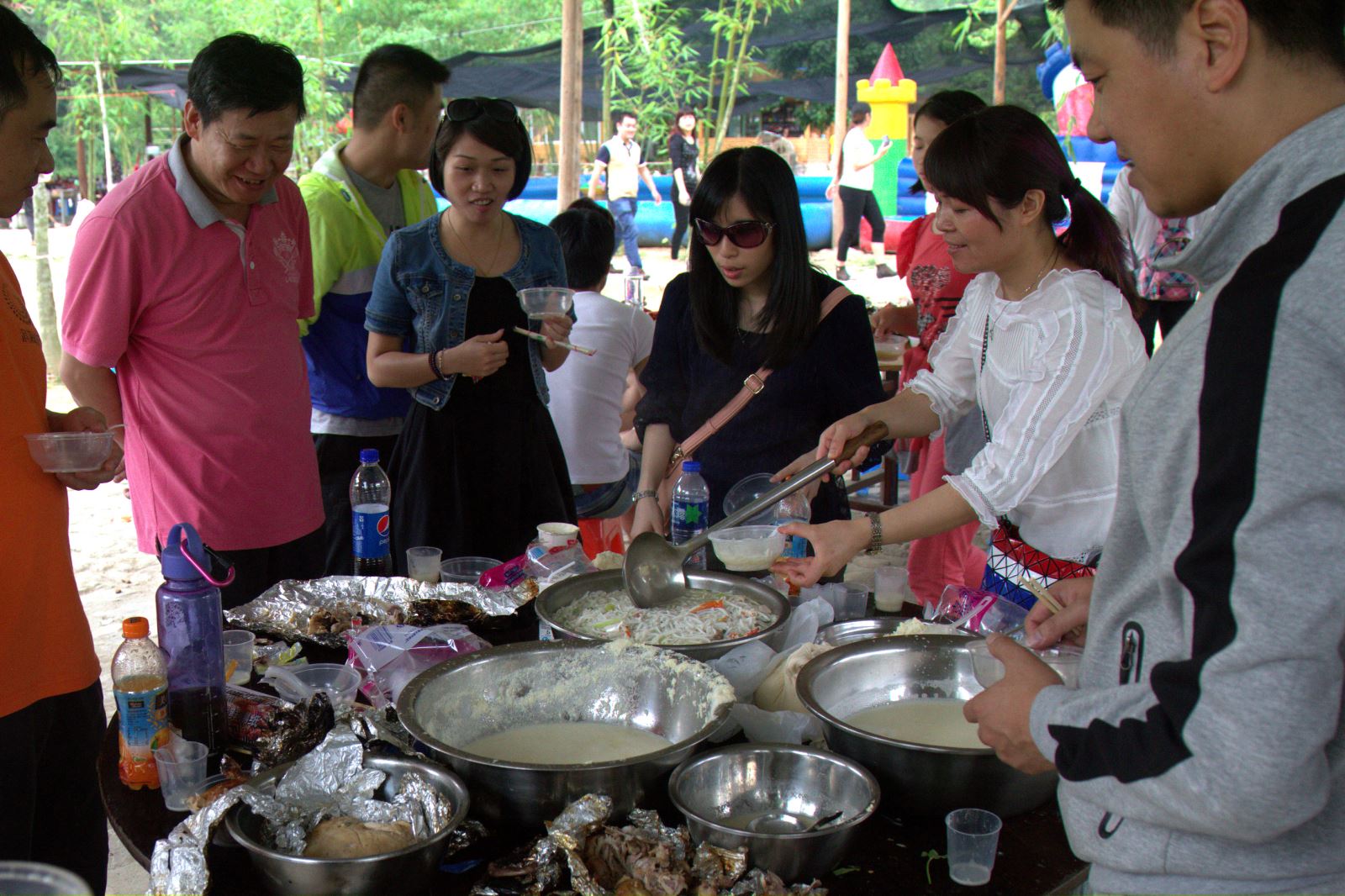随着“战争”的结束,回归到田园生活,午餐时间将至,大家一起来野炊。在这里,大家得自己做吃的,从磨黄豆、过滤至煮出香滑爽口的豆浆,到各位高管们一起洗菜,由柯工掌勺煮出一锅海鲜粉,相信许多在家中都没有做过家务的领导们在这里好好体验了一把。