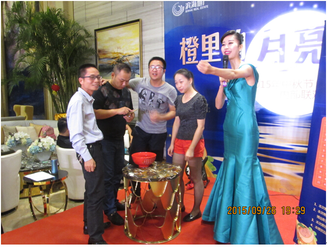 9月26日晚,滨海地产2015中秋晚宴,在滨海橙里营销中心拉开帷幕!值此中秋佳节,滨海地产旗下各团队员工情系橙里,欢聚一堂,共庆中秋。
